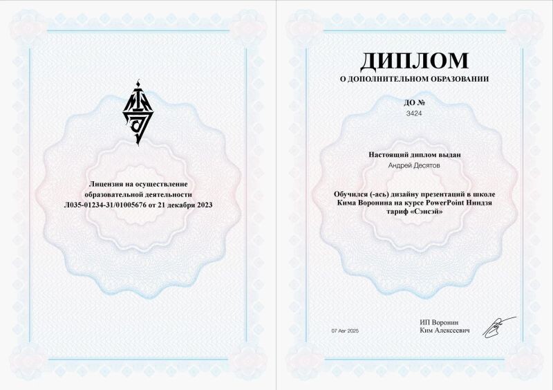 - Школа дизайна Кима Воронина PowerPoint Ниндзя тариф «Сэнсэй», 2025 г.