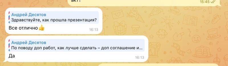 Мы попросили Андрея Десятова подготовить две профессиональные презентации для нашего мероприятия. Он сделал это правильно и в сжатые сроки. Кроме того, мне понравилось, как Андрей взаимодействовал с нами - он внимательно слушал наши пожелания и оперативно вносил поправки. Он также разбирался в нашей тематике, что было приятным бонусом. Я рекомендую этого специалиста!