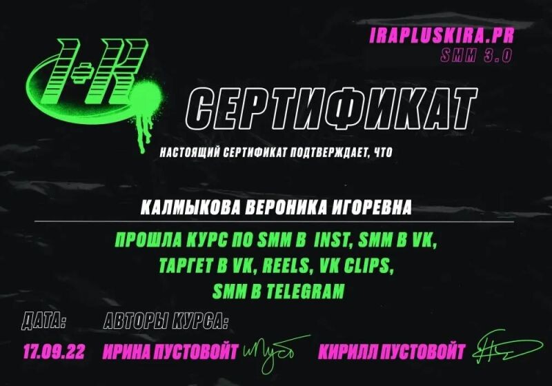 - IRAPLUSKIRA.PR, курс по SMM, 2022 г.