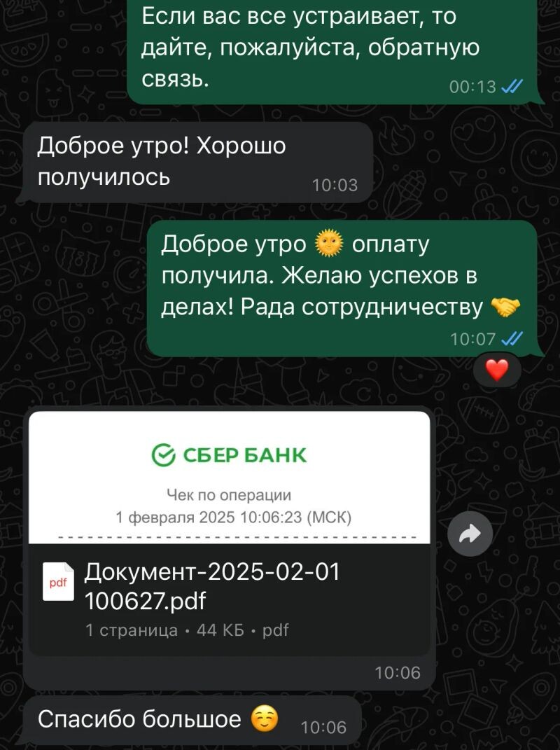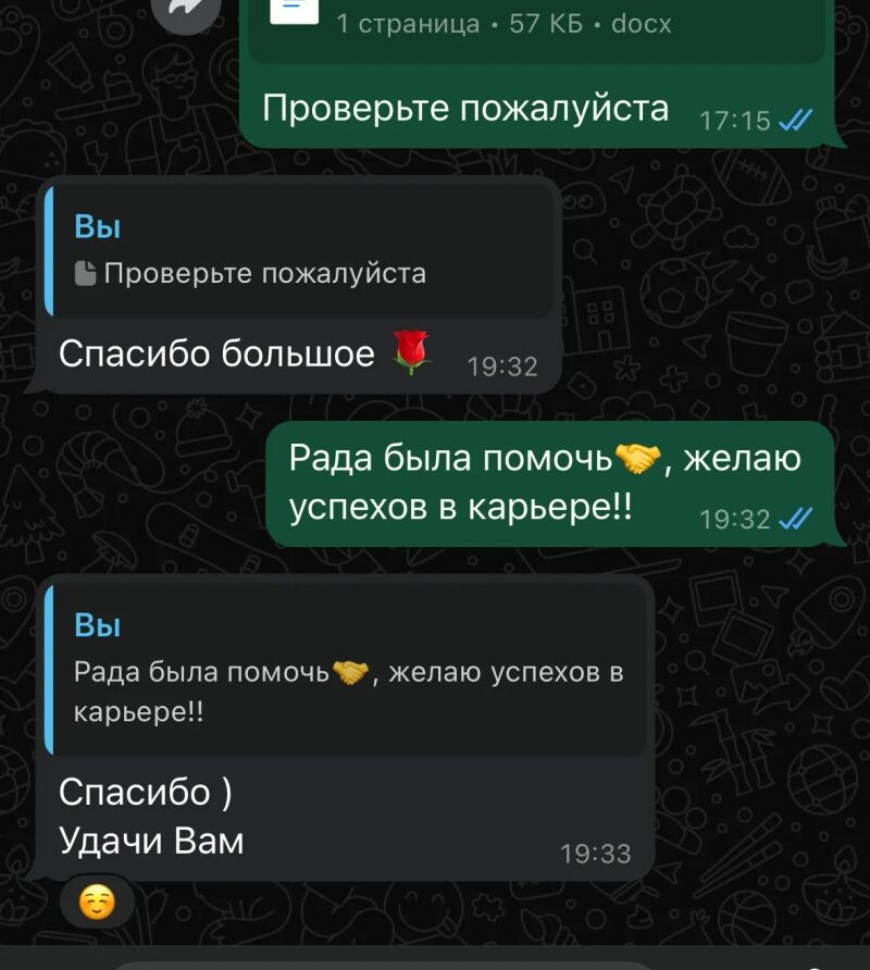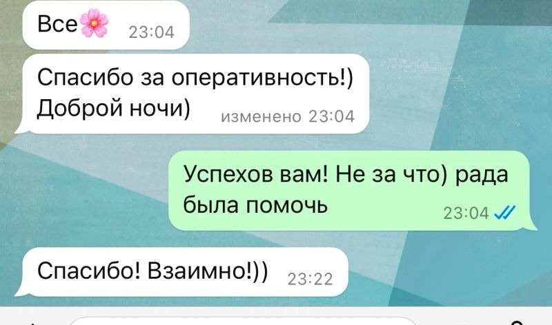 Все понравилось, спасибо большое за оперативность и грамотное резюме 🌹