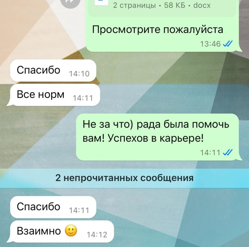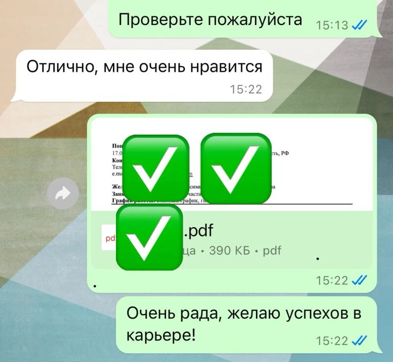 Резюме понравилось, буду отправлять сейчас работодателю!)