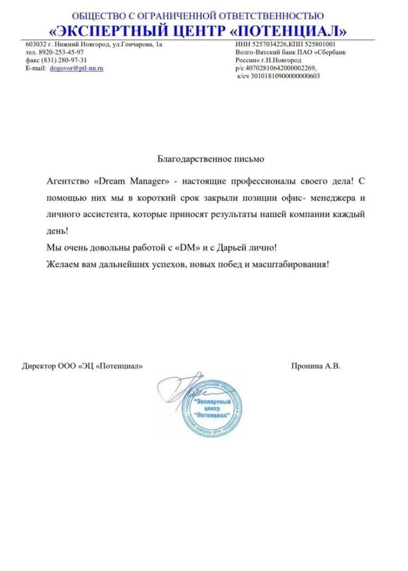 - ЭЦ «Потенциал», благодарственное письмо, 2023 г.