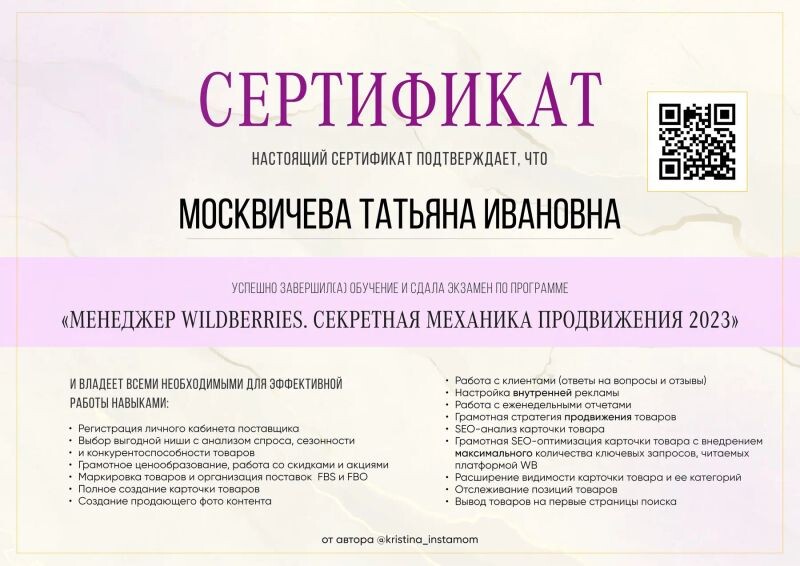 - Сертификат ИНФОГРАФИКА ДЛЯ МАРКЕТПЛЕЙСОВ (с 2025 г.).