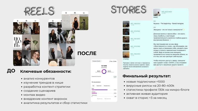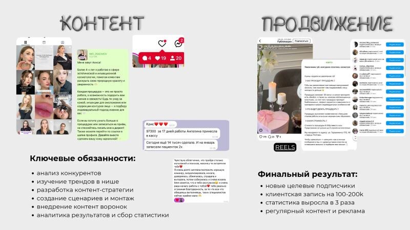 - Контент-маркетинг 30000 - 50000 ₽ за усл.Разработка контент стратегии на месяц, помощь со сценариями для любой единицы контента (сторис, посты, рилс), помощь с рекламой и продвижением страницы под ключ
