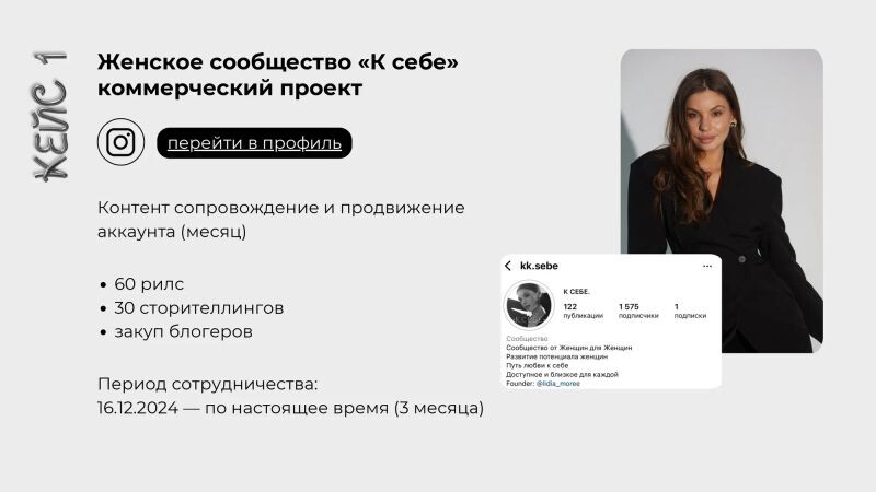 - Контент-план 10000 ₽ за нед.Тестовый период работы 7 дней, в него входит разработка контент стратегии и помощь в монтаже любой единицы контента (посты, сторис, рилс)