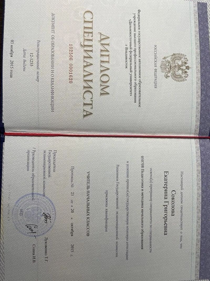 - ФГАОУ высшего профессионального образования "Дальневосточный федеральный университет" г. Владивосток, 2009–2015 гг.