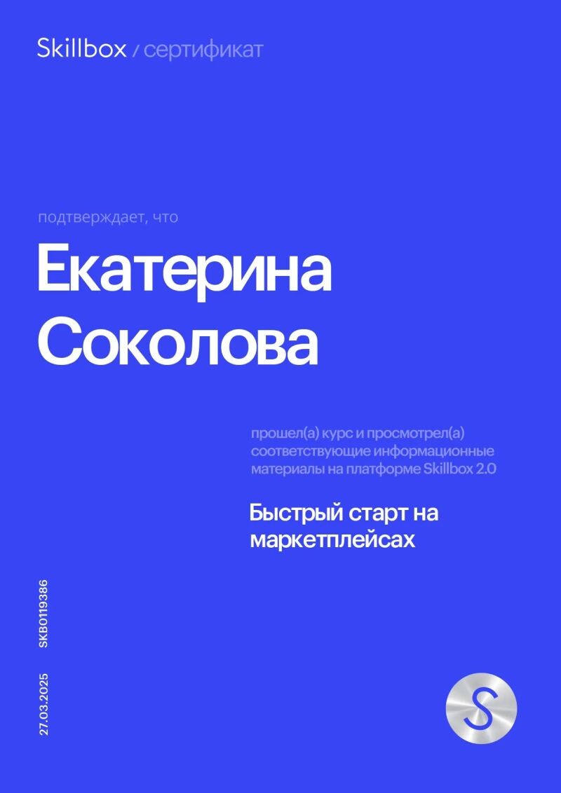 - Skillbox "Быстрый старт на маркетплейсах", 2025 г.