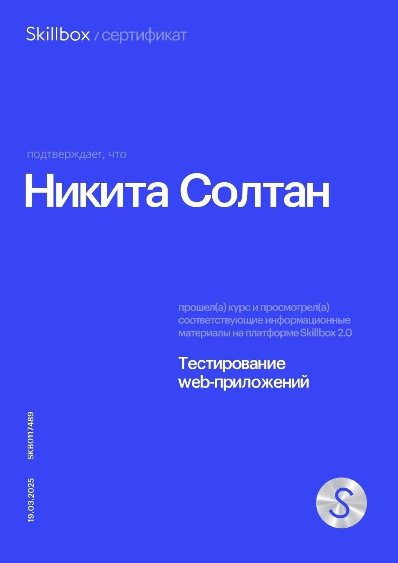 - Skillbox: qa ручное тестирование web и mobile приложений, 2024–2025 гг.