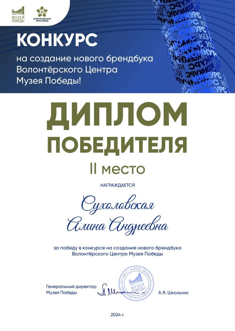 - Всероссийский конкурс брендбуков для волонтерского центра Музея Победы (с 2024 г.).