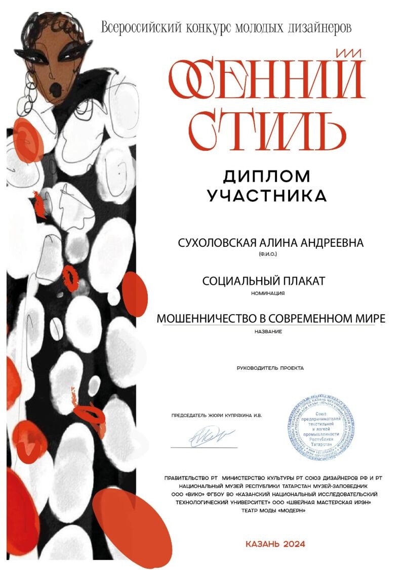 - Всероссийский конкурс молодых дизайнеров "Осенний стиль" (с 2024 г.).