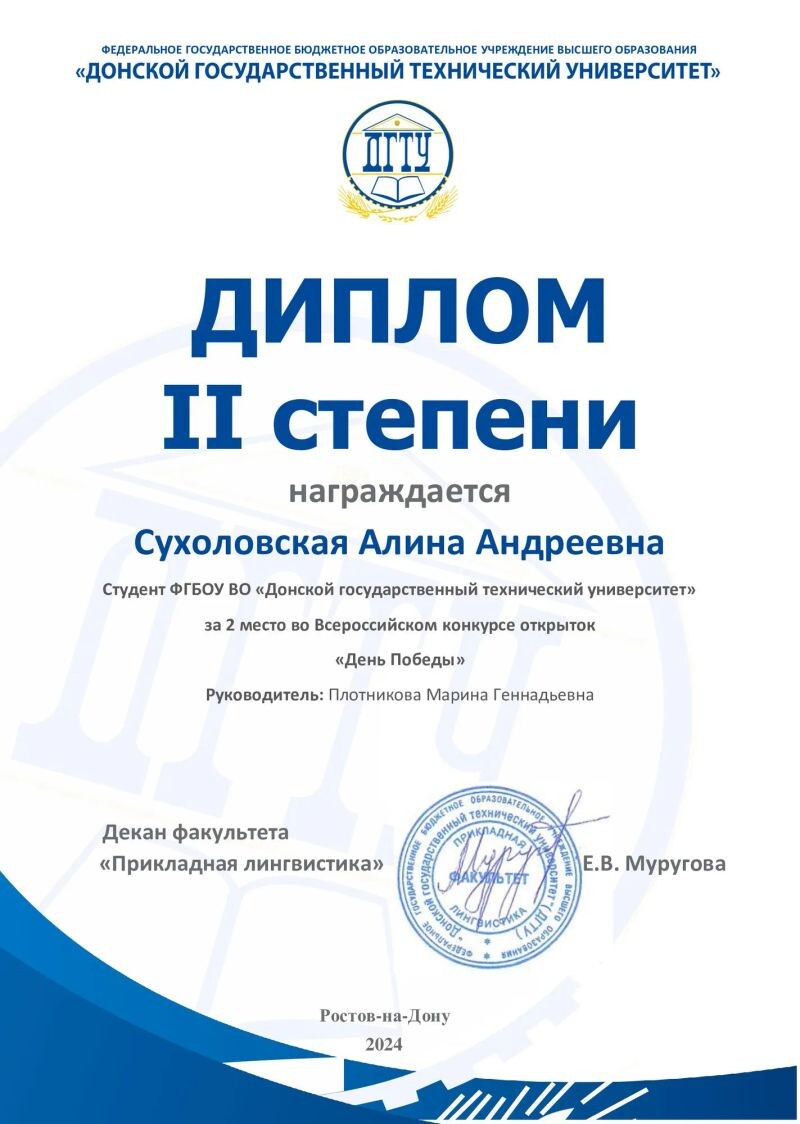 ► Сухоловская Алина Андреевна работает территориально: г. Ростов-на-Дону, а также дистанционно.