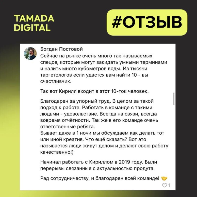 ► Связаться с TAMADA DIGITAL и заказать услугу можно за пару минут. Просто нажмите на кнопку «Связаться со специалистом» и заполните короткую форму.