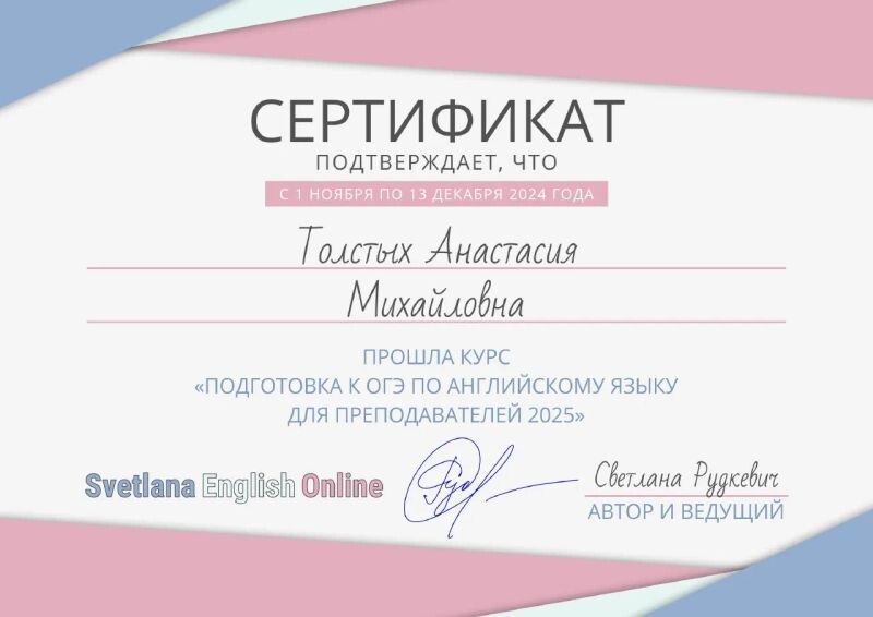 Толстых Анастасия Михайловна