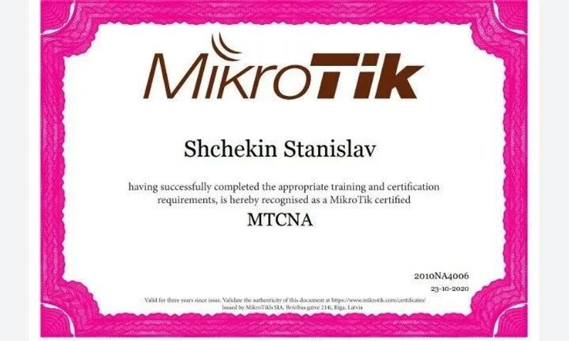 Работа была выполнена великолепно, я полностью удовлетворен/удовлетворена. Станислав - опытный специалист. Настройка Микротика на два канала была выполнена очень быстро, он учел все мои пожелания и заранее предоставил профессиональные консультации по множеству вопросов. Рекомендую.