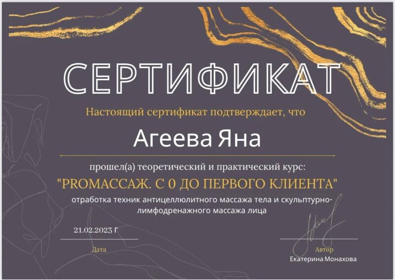 - Курс «PROмассаж. С 0 до первого клиента», 2023 г.