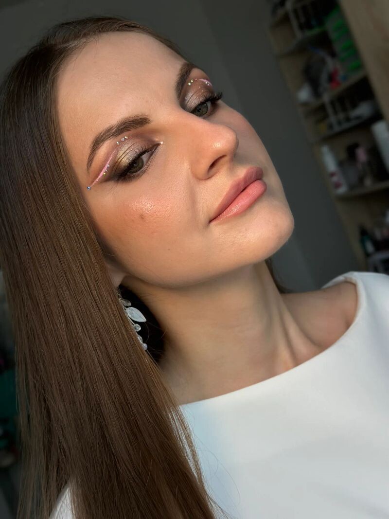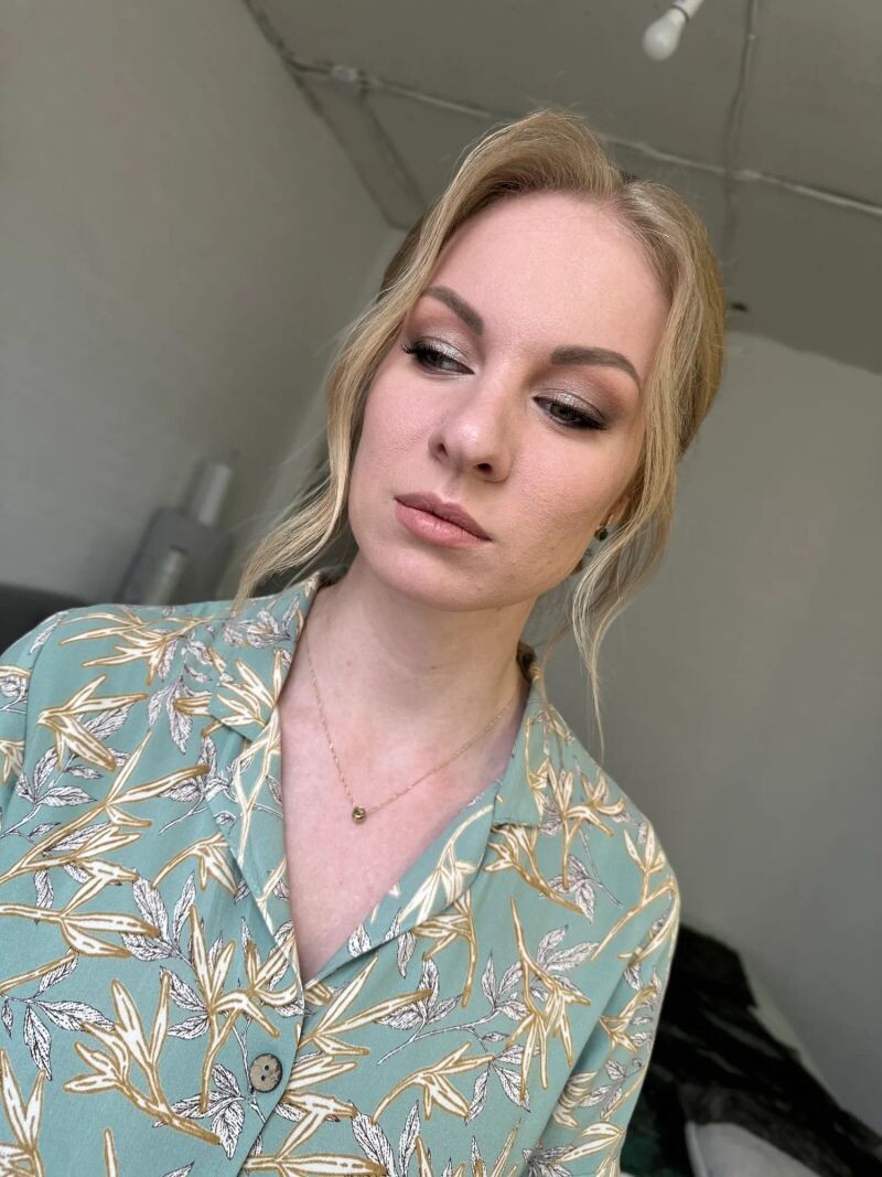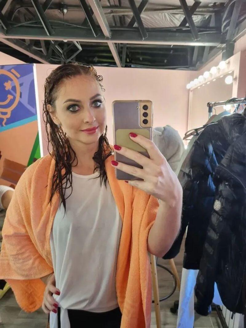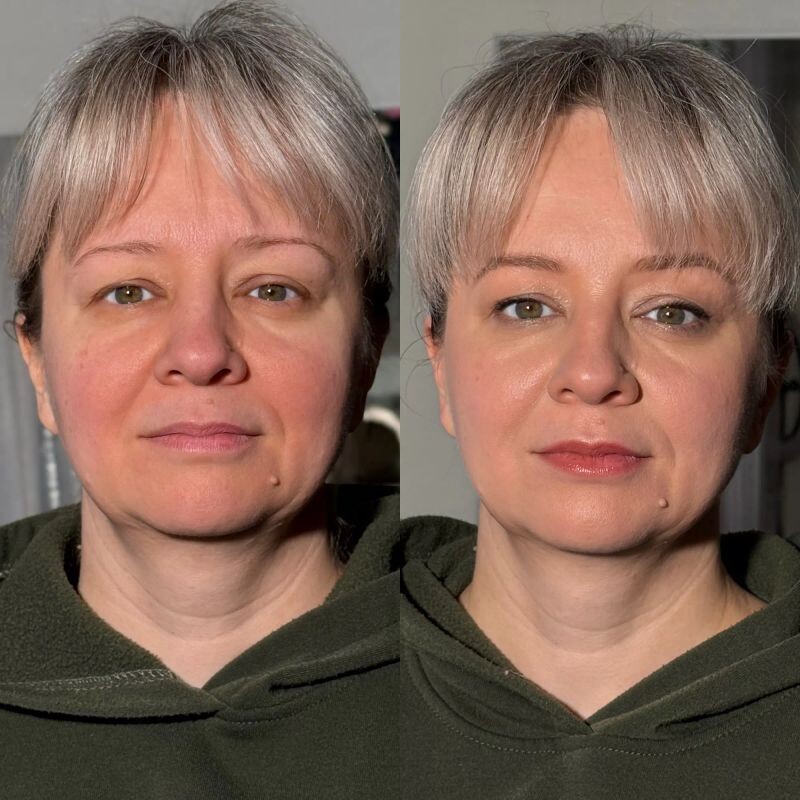 Яна - очень приятная и опытная девушка👍 Она красиво накрасила мое лицо, мне даже на свадьбе не делали такого макияжа 😍 Мои щеки как-то волшебно исчезли, а носик стал стройнее, я сразу стала моложе и стройнее 😂 Я бы была готова так выйти на фотосессию даже без глаз 😄 Фотосессия танца проходила в студии, что-то вроде под дождем. Вода льется мне в глаза около полутора часов. Яна сама протестировала несколько вариантов макияжа и выбрала самый стойкий для меня, и он действительно продержался!!! ❤️🔥 Яна отлично и ярко подчеркнула мои глаза, так что они будут видны даже на видео и в темноте 👍 Оператор и тренер сказали, что это идеально! Вот фото до (в полотенце) и после, чтобы вы могли видеть.
