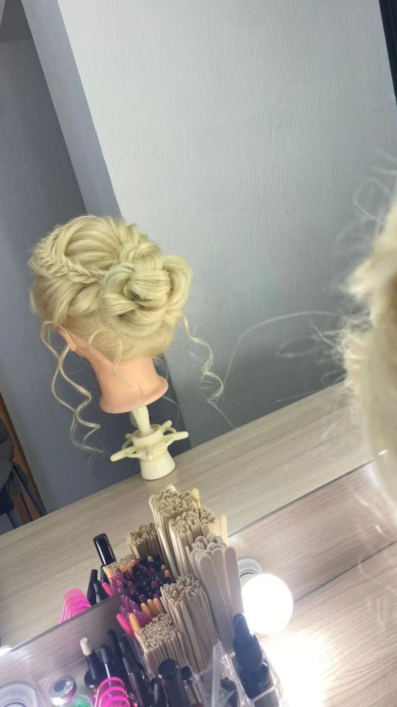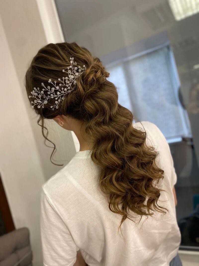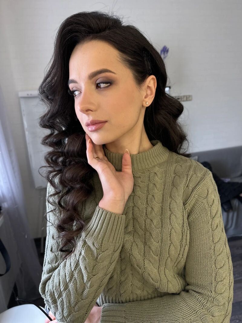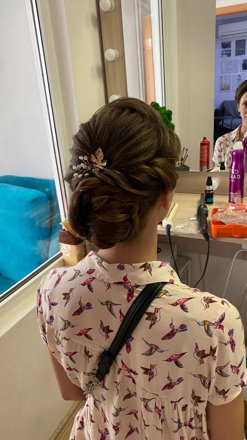 - Вечерняя укладка 1500 - 3500 ₽ за усл.Зависит от длины и густоты волос, сложности работы