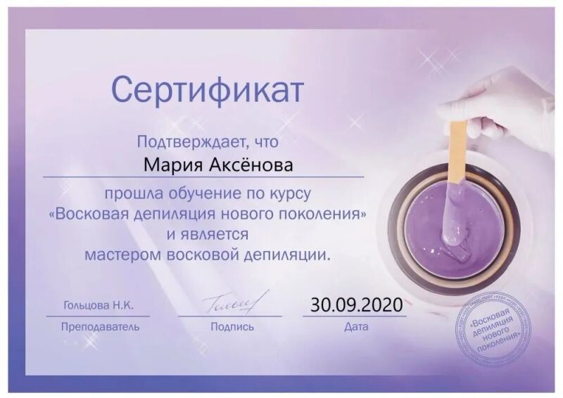 - Мастер восковой депиляции, 2020 г.