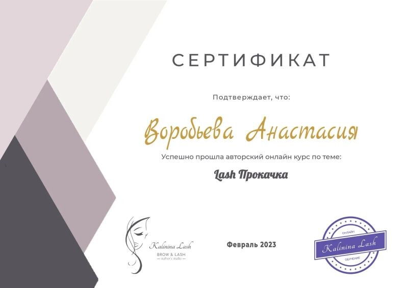 - Karina Lash, курс «Lash прокачка», 2023 г.