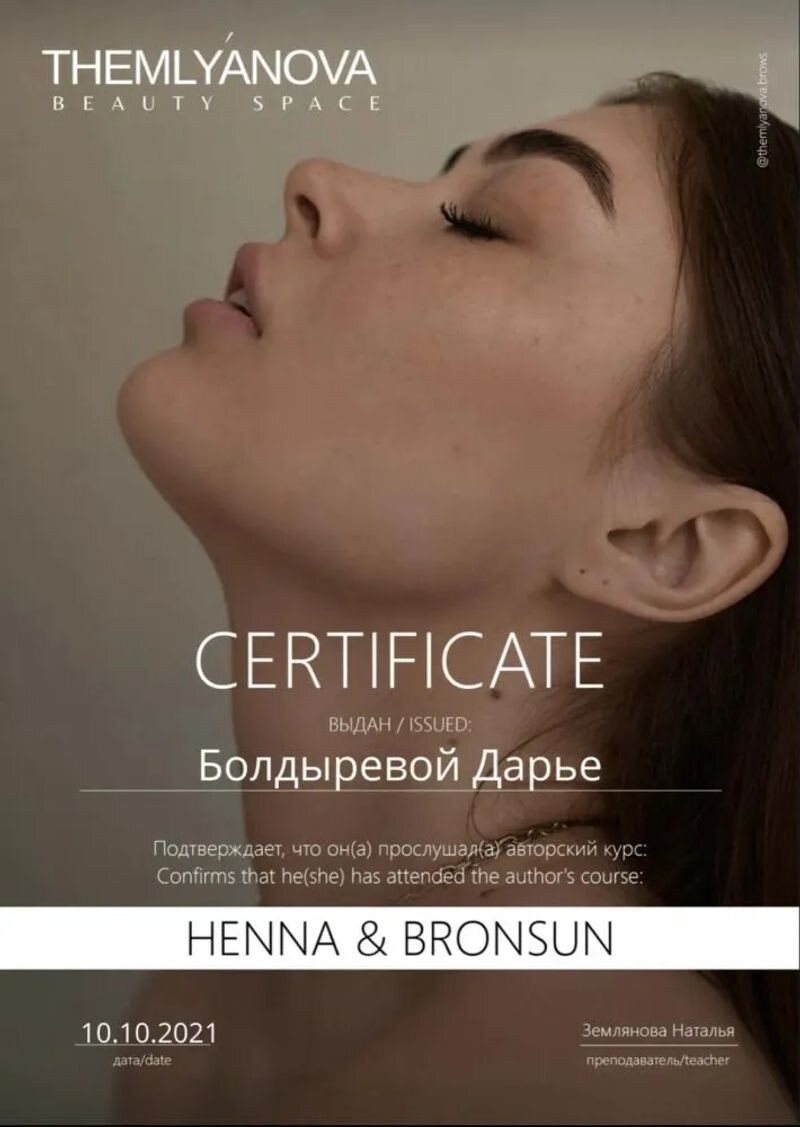 - Themlyanova beauty space, авторский курс «HENNA&BRONSUN», 2021 г.