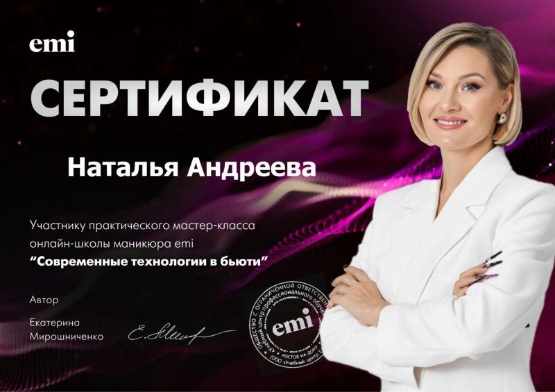 ► Связаться с Андреевой Натальей Андреевной можно за пару минут. Нажмите на кнопку «Записаться к мастеру» и заполните короткую форму.
