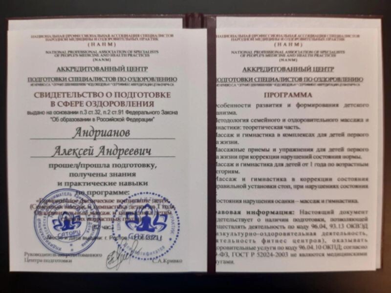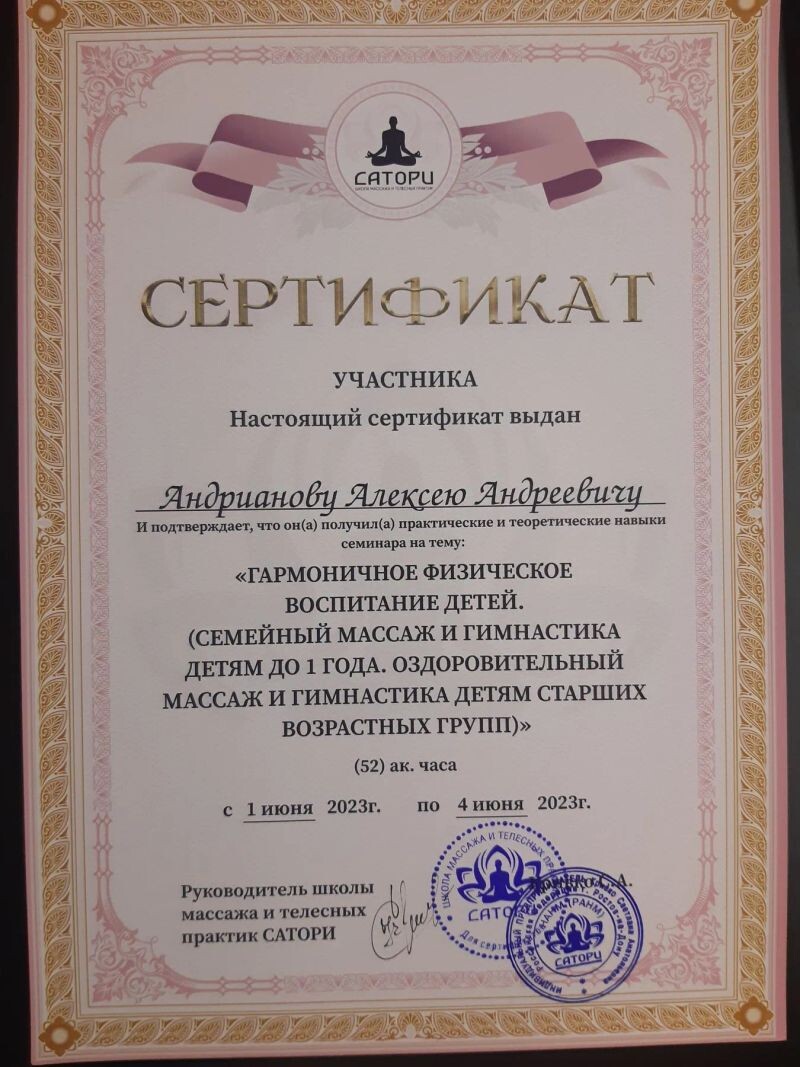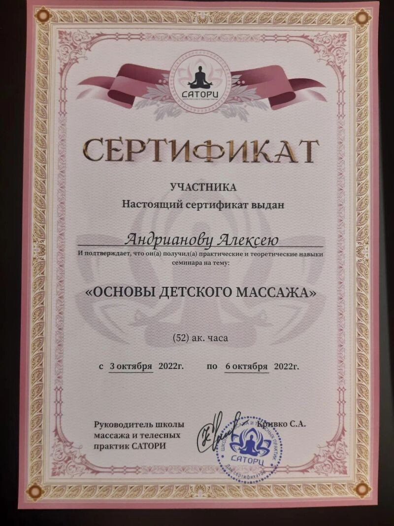 - Сатори, семинар «Основы детского массажа», 2022 г.