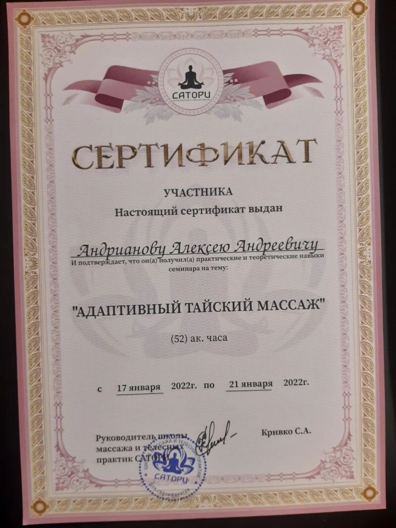 - Сатори, семинар «Адаптивный тайский массаж», 2022 г.