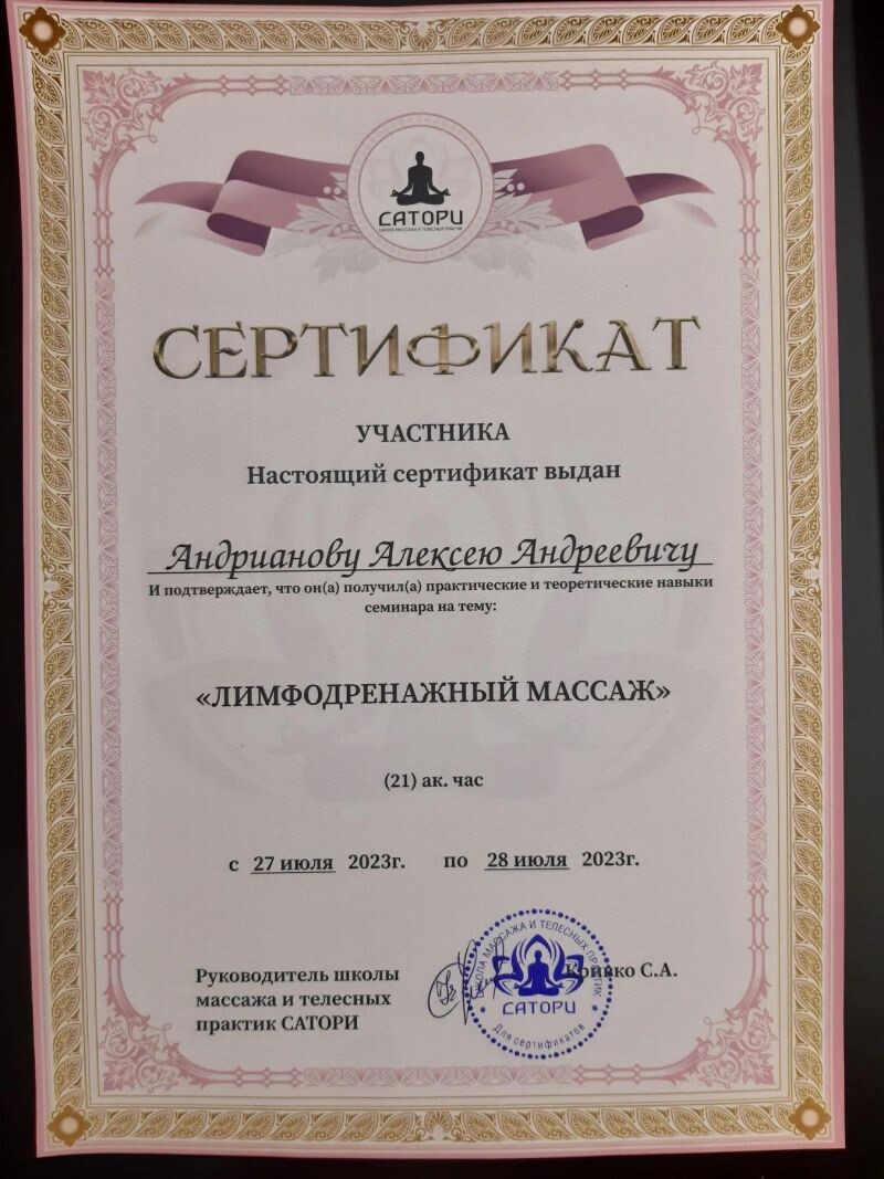 - Сатори, семинар «Лимфодренажный массаж», 2023 г.