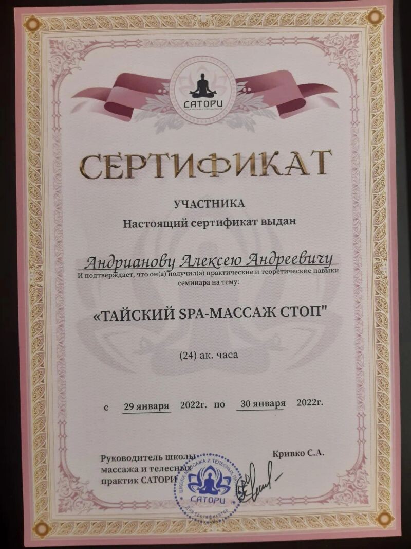 - Сатори, семинар «Тайский SPA-массаж стоп», 2022 г.