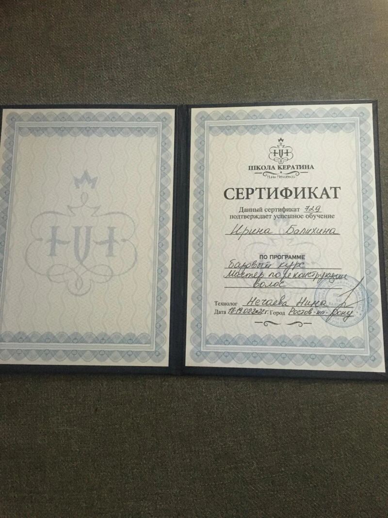 - Школа кератина Нины Нечаевой, базовый курс «Мастер по реконструкции волос», 2022 г.