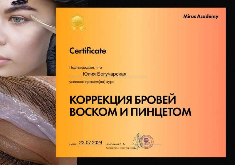 - Коррекция бровей воском и пинцетом, 2024 г.