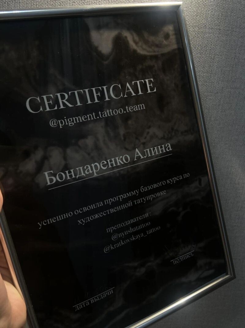 - Освоила программу базового курса по художественной татуировки (с 2023 г.).