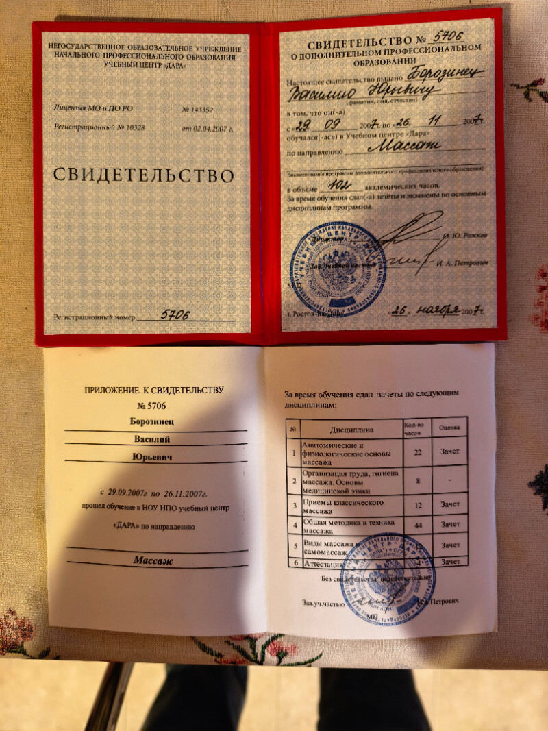 Являюсь сыном и продолжателем дела известного в городе Ростове-на-Дону и за его пределами мануального терапевта Юрия Васильевича Борозинец. Работаю в этом направлении более 20 лет.