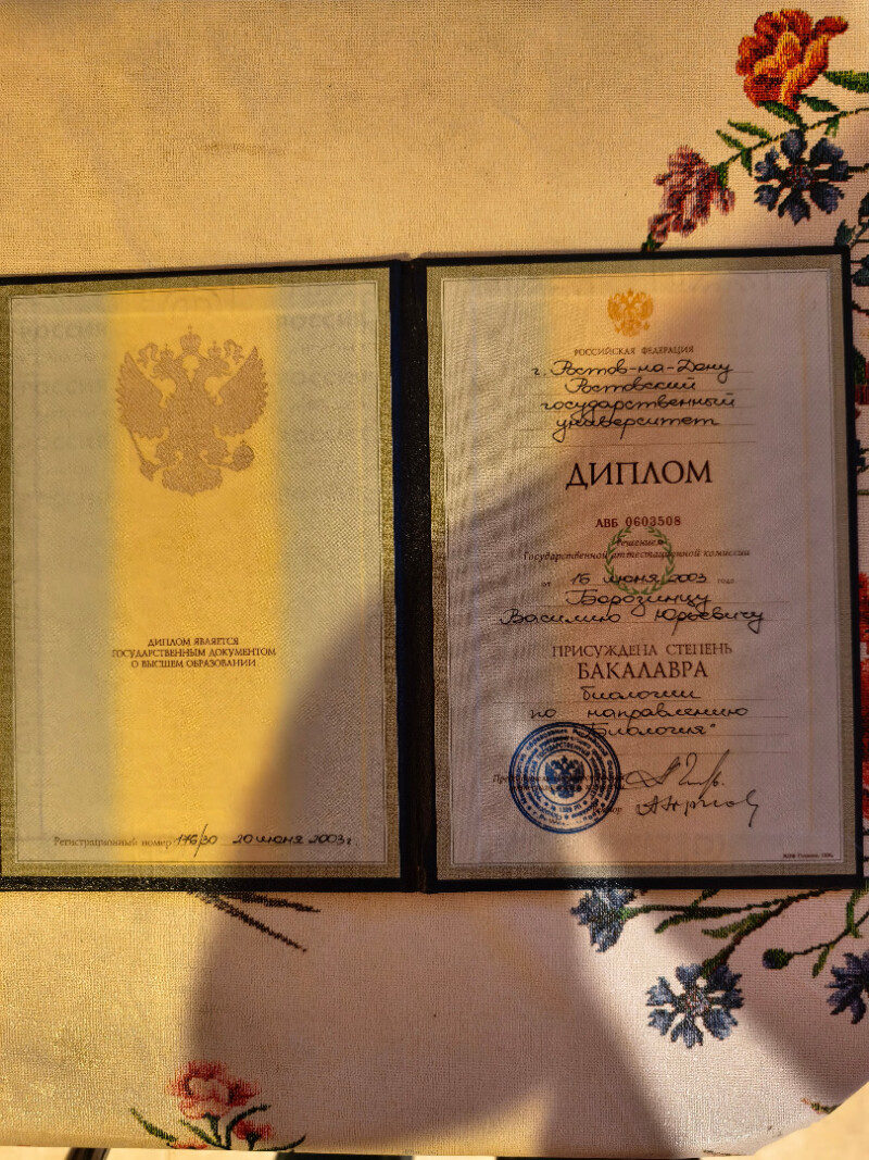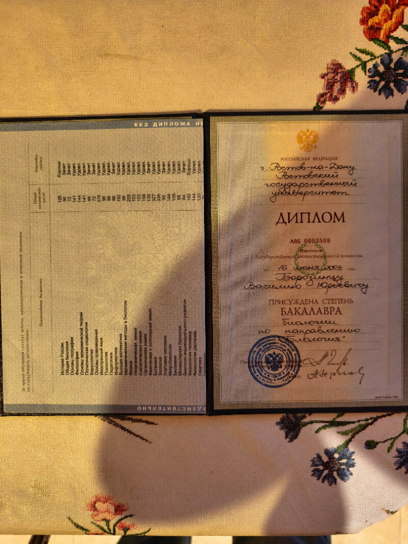 - Высшее образование бывший РГУ нынешний ЮФУ ,Анатомия и физиология человека