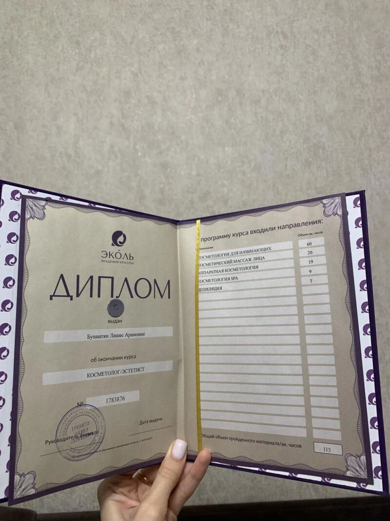 - Академия красоты «Эколь», косметолог-эстетист, 2022 г.