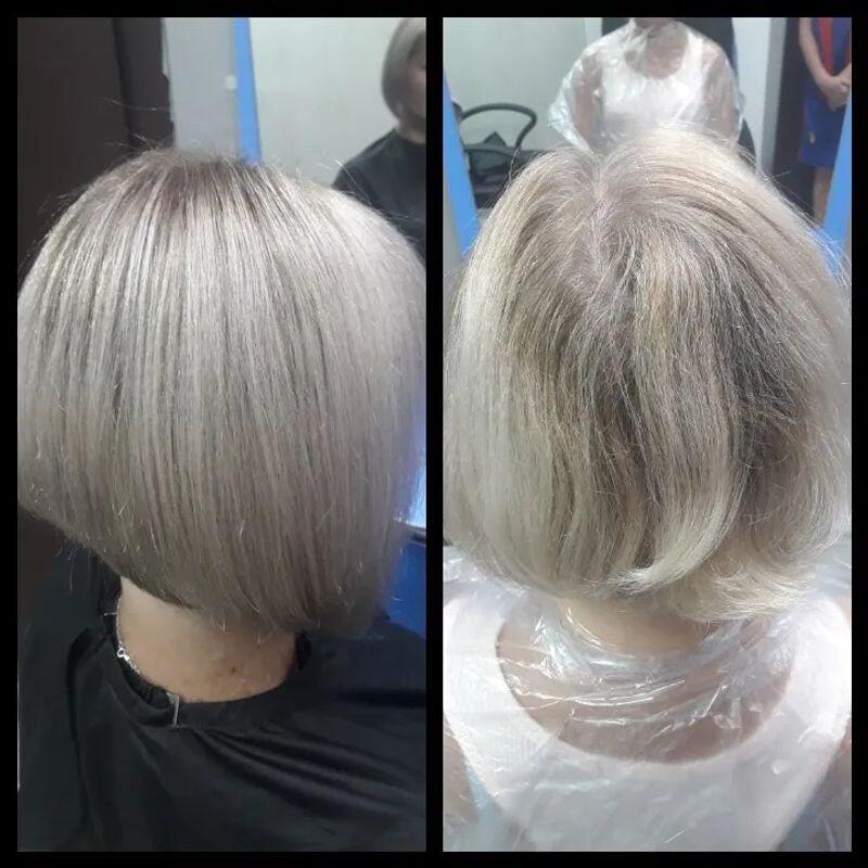 - Окрашивание седых волос 1500 ₽ за усл.Конечная цена зависит от длины и густоты волос