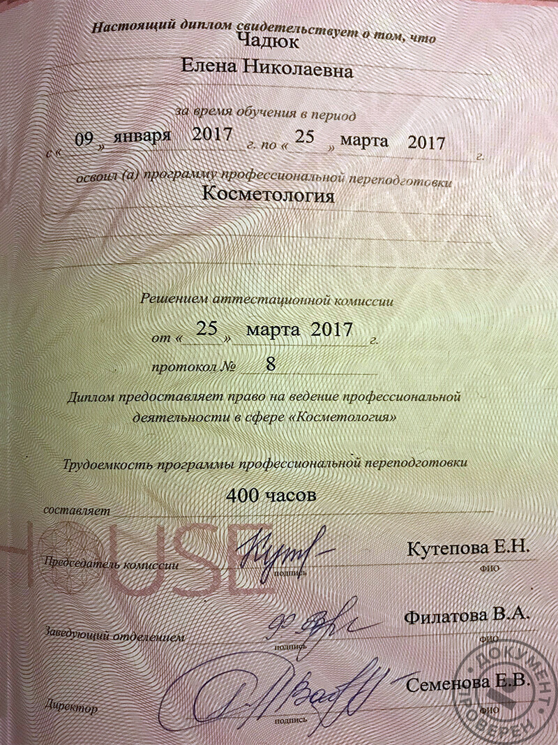 - УЦ Lucky House, косметолог (2017 г.).