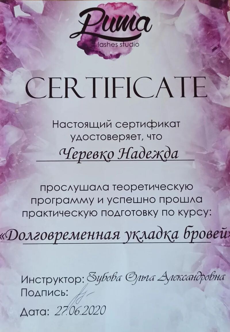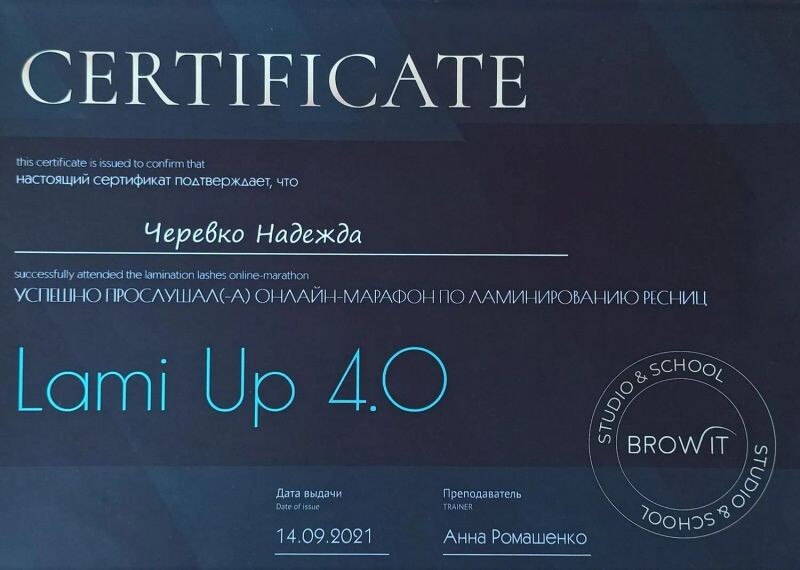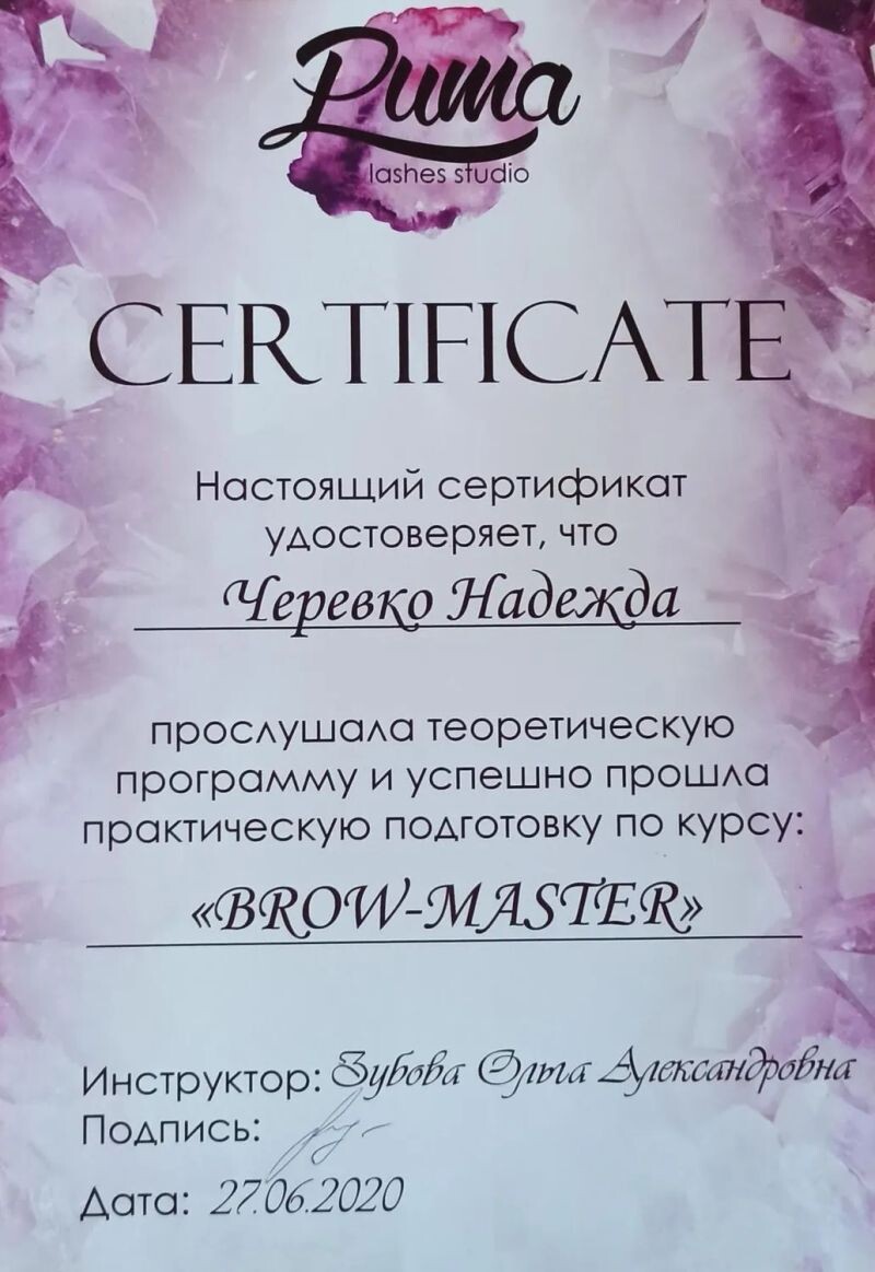 - Мастер бровист (с 2020 г.).