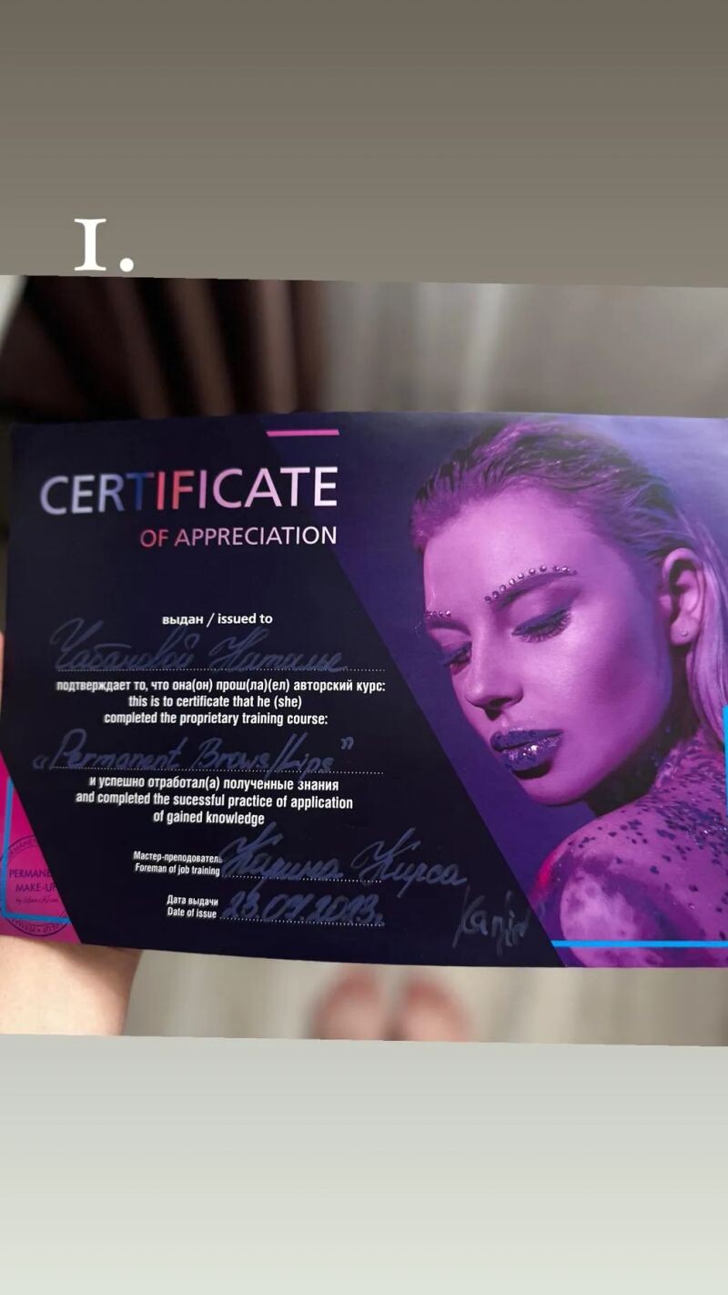 - Карина Кирса, авторский курс Permanent Brows / Lips, 2023 г.