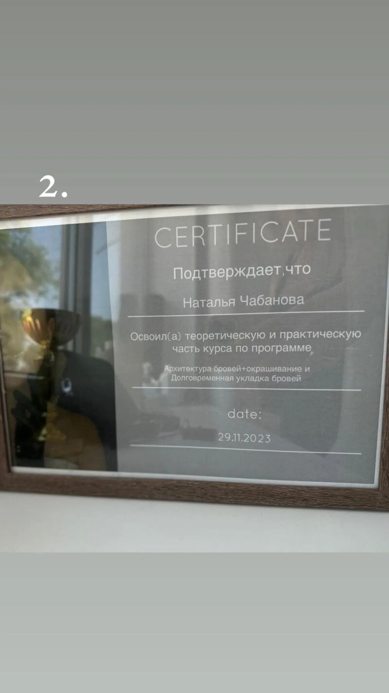 - Программа «Архитектура бровей + окрашивание и долговременная укладка бровей», 2023 г.
