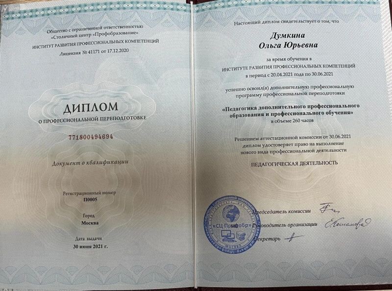 - Институт развития профессиональных компетенций, педагогика дополнительного профессионального образования и профессионального обучения, 2021 г.