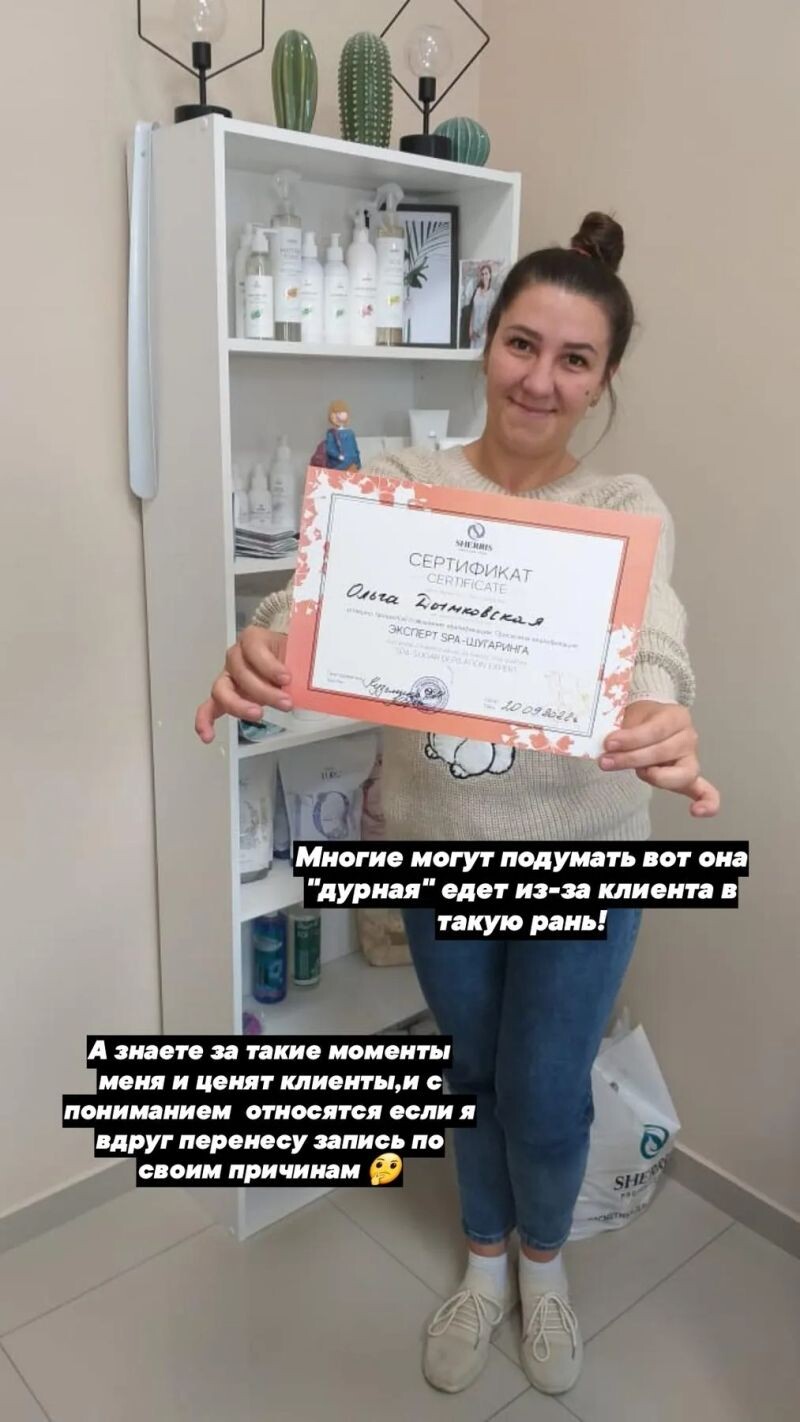- Сертификат «Шугаринг» (с 2021 г.).