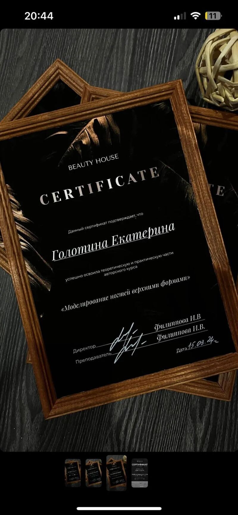 - Beauty house, курс «Моделирование ногтей верхними формами», 2024 г.