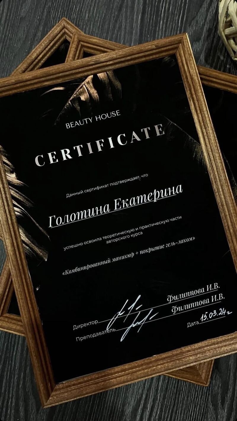 - Beauty house, курс «Комбинированный маникюр + покрытие гель-лаком», 2024 г.
