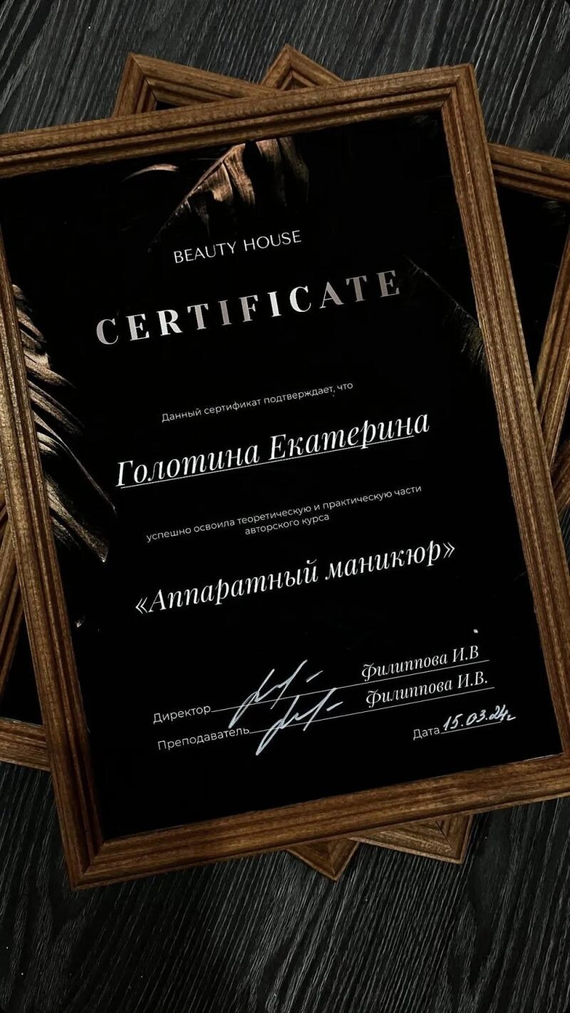 - Beauty house, курс «Аппаратный маникюр», 2024 г.