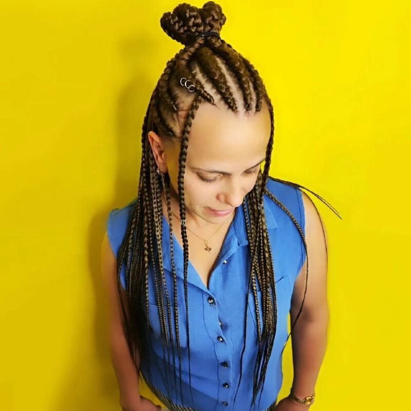 - Афрохвост 2400 - 7000 ₽ за усл.Зависит от колличества брейдов, дополнительных элементов и от самих волос