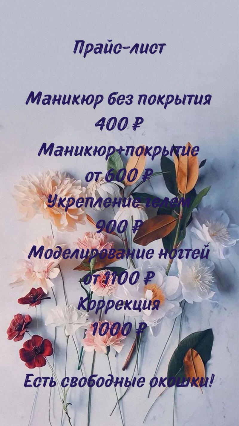 - Маникюр 400 - 900 ₽ за услугуМаникюр без покрытия 400руб