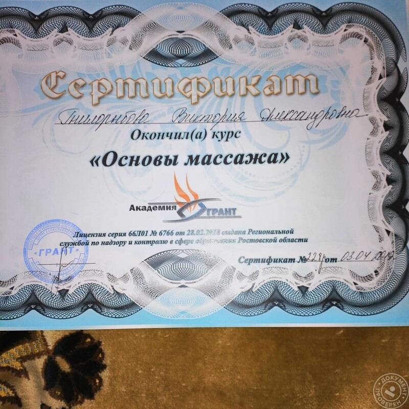 - УЦ «Гранд», основы массажа, 2018–2019 гг.