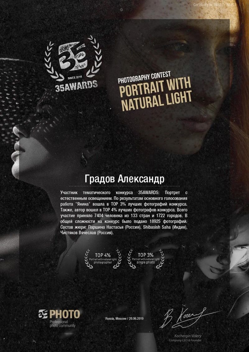 - 35AWARDS, ТОП 4% лучших фотографов конкурса, 2019 г.