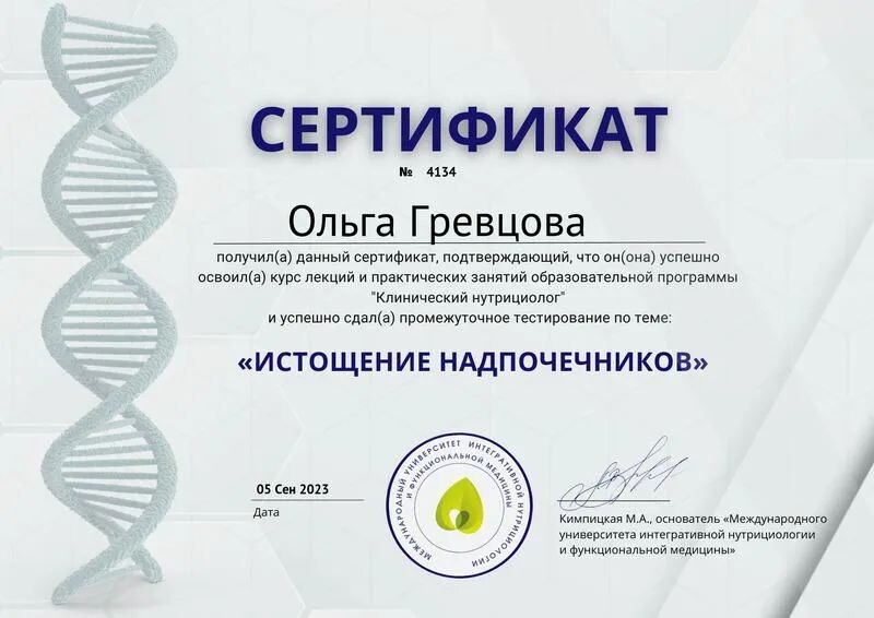 - Международный университет интегративной нутрициологии и функциональной медицины, истощение надпочечников, 2023 г.